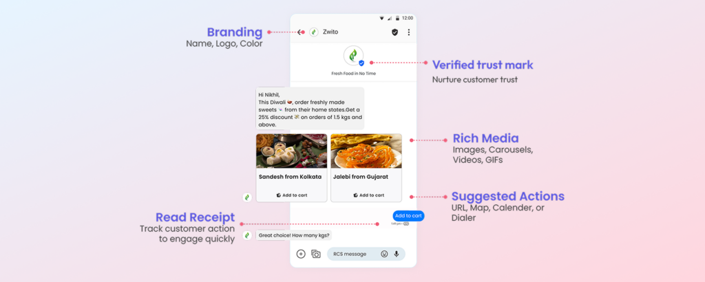 Trust and Personalized Experiences: In a world where customers avoid brands they don’t trust, RCS offers a secure and verified channel for communication. Coupled with the fact that 80% of consumers are comfortable with personalized experiences, RCS provides the perfect platform for building trust and delivering tailored content.