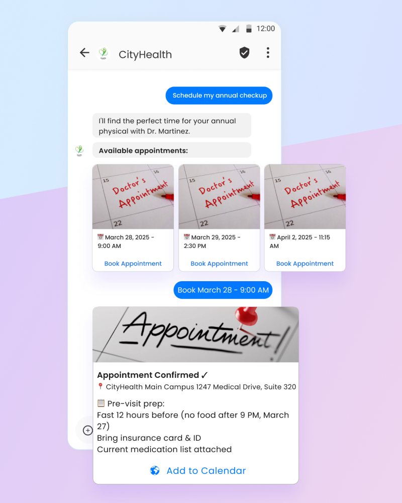 Financial Services: Instead of downloading bank apps, customers interact with AI agents through RCS for everything from balance checks to loan applications. The verified business profile eliminates fraud concerns while rich media enables secure document sharing and electronic signatures.
